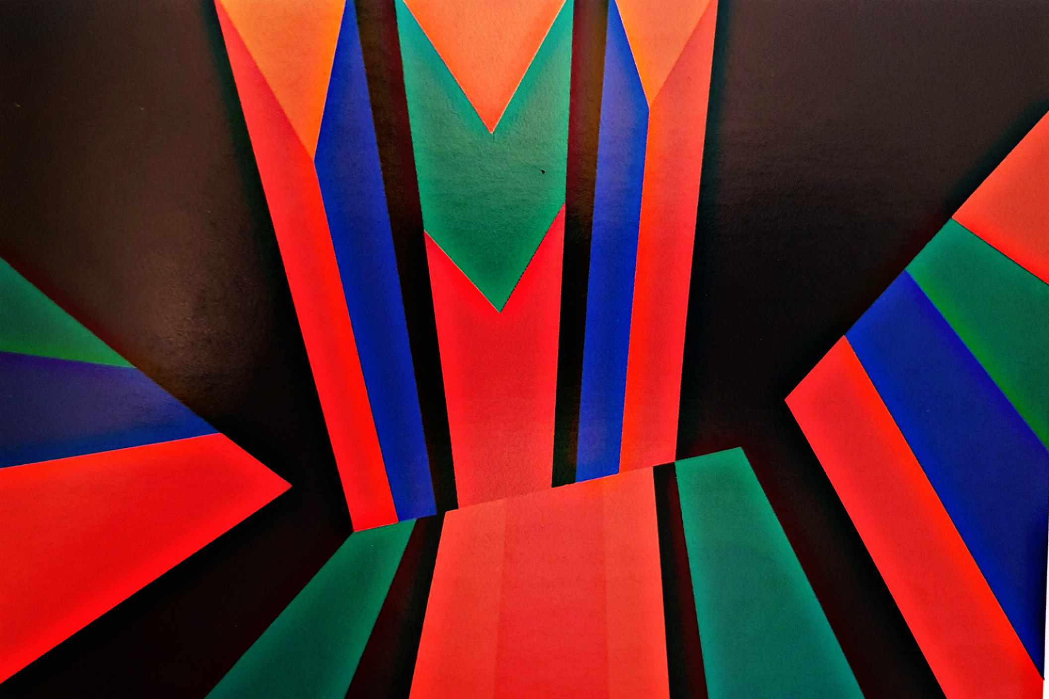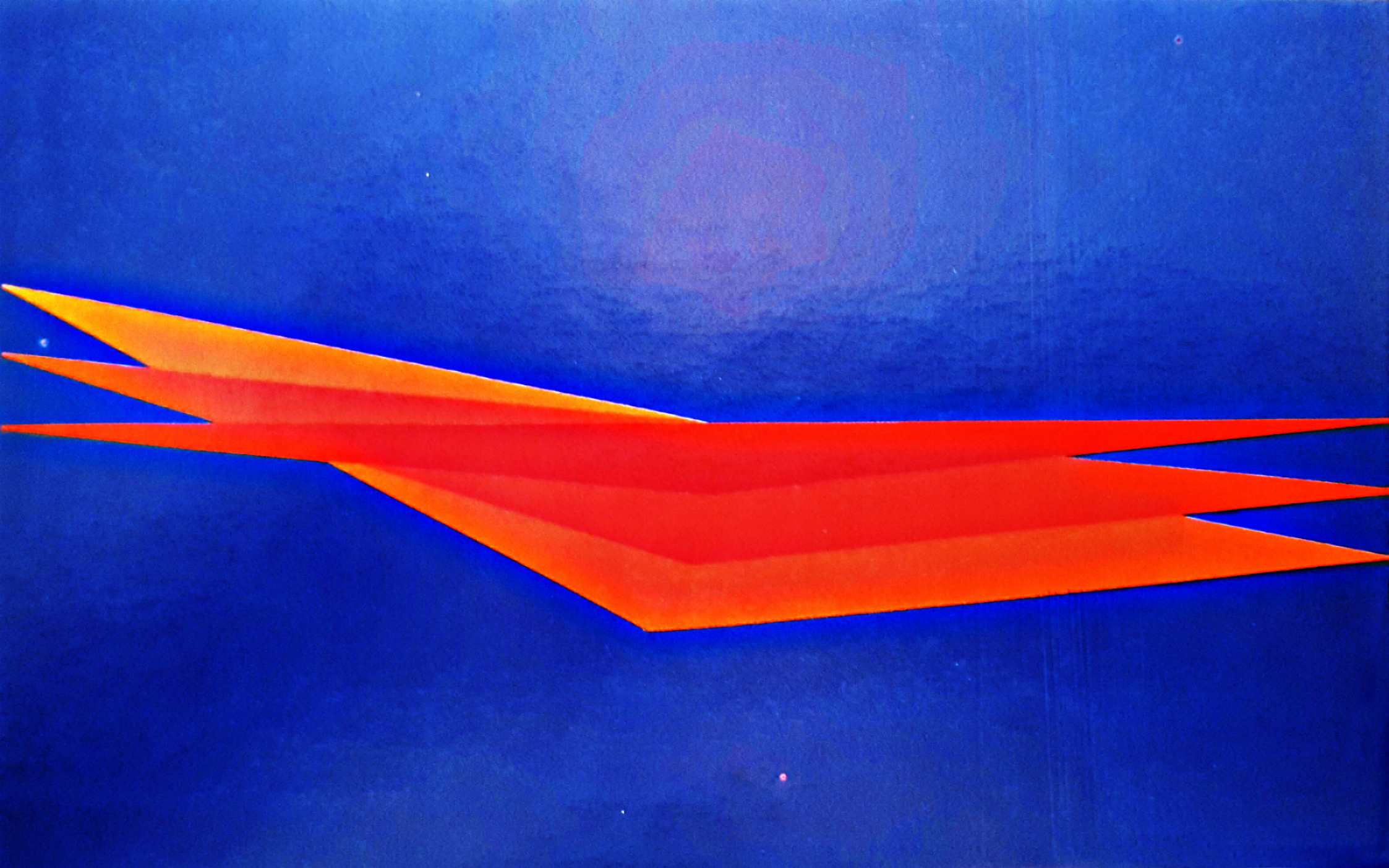 I enjoyed seeing where one could get to by means of always bright colours – because I like colours – for example by taking geometric figures, making them ideally rotate in these fictitious spaces of the canvases. For me, however, they were not fictitious but had a volume behind them so I would rotate these planes and, every so often, stop the movement with a colour. And I went on like this but beyond that I wouldn’t know what to do because all research has an end at some point. Now I’m studying to see where to go next.
